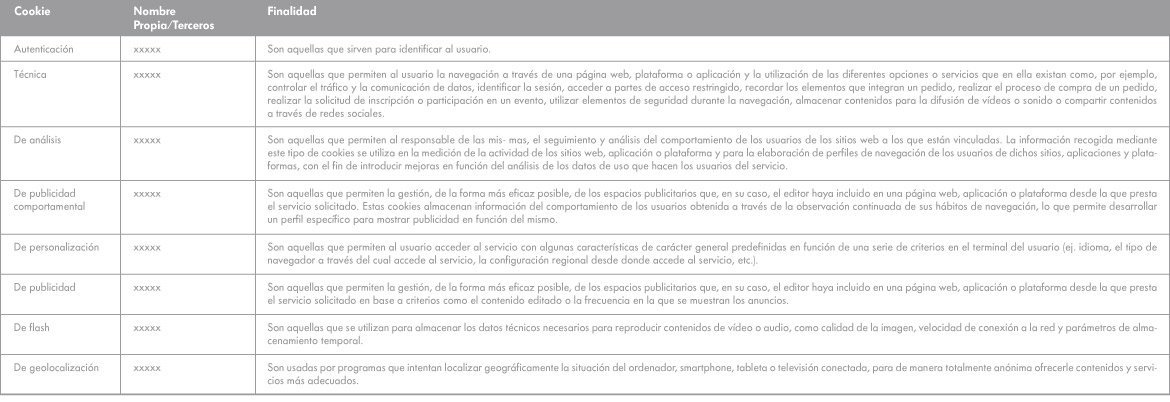 En esta página web se utilizan tecnologías tales como cookies, píxeles y sistemas de almacenamiento local para facilitar la navegación. A continuación se explica lo que es una cookie, las cookies que utilizamos, los fines para los que se utilizan y las opciones disponibles para controlarlas o eliminarlas.